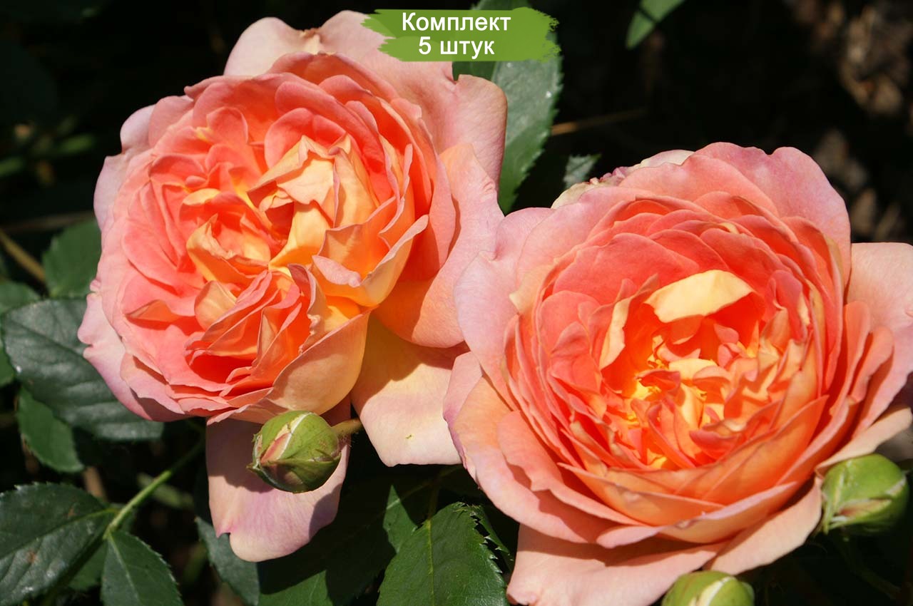 Приобретайте комплект из 5 саженцев английской розы Леди оф Шалот (Lady of Shalott) по цене 4!